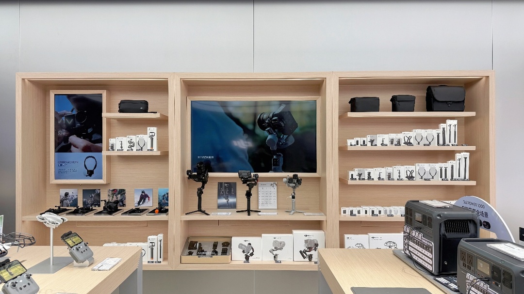 从消费级到专业级的全场景覆盖,满足不同场景的使用需求。三摄旗舰影像航拍机“御 Mavic 系列”,一亿像素哈苏镜头捕捉绝美航拍画面,随时开启飞行创作,轻松拍出电影感大片; 日常拍摄、户外探索的“灵眸 Osmo 系列”,轻松解锁多样创意角度,让日常旅行、户外运动的精彩被清晰定格,更有重磅新品Osmo Action 6 是,DJI 首款配备可变光圈的运动相机,突破传统运动相机固定光圈模式,结合全新 1/1.1 英寸方形传感器,为旗舰级运动相机的影像表现和创意拍摄解锁更多可能。“Mic 系列”无线麦克风,为视频拍摄提供清晰收音,解决户外创作的收音难题。同时覆盖了储能及家居科技产品,ROMO 扫地机器人,精准避开家具障碍,凭借智能导航系统与高效清洁能力,成为家庭清洁的“好帮手”, 更是一款不用藏起来的扫地机器人。Power系列,便携户外电源,告别断电焦虑,轻巧高效,专为多元用电场景而生,不论是露营探险、公路旅行,它都能化身移动电站,让用电更自由、更安心。产品方面,体验店实现了从消费级到专业级的全场景覆盖。