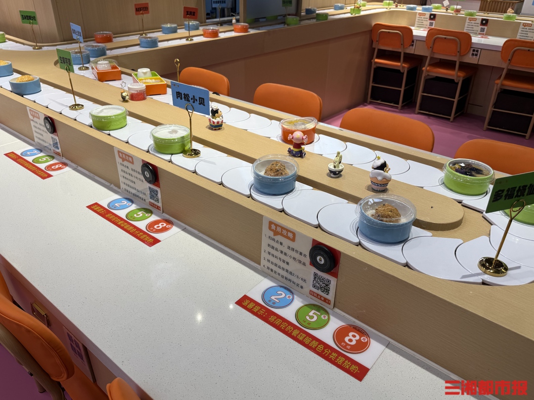 “这种转转模式太新颖了,不用等待下单,看中哪个直接取,而且分量小巧,能一次性尝试多种口味。”正在用餐的白领王女士告诉记者,她最近逛街都会来这里歇脚,人均30元就能实现甜品自由,性价比远超传统甜品店。该店工作人员表示,门店虽然开业不久,但是周末、节假日的客流相对可观,偶尔还需要等位,“其中也有不少家长带着孩子前来用餐。”