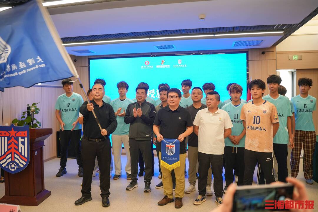 湘超联赛组委会为大湾区湖南人足球队授旗。(受访者 供图)