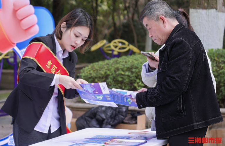 三湘都市报3月12日讯(全媒体记者 仝若楠)3月10日下午,中邮保险湖南分公司走进长沙市开福区恒大雅苑社区开展了以“清朗金融网络 守护安心消费”为主题的“3•15”金融教育宣传活动。现场吸引了上百位社区老年居民踊跃参与,累计发放宣传折页200余份,帮助老年人提高金融风险防范意识。